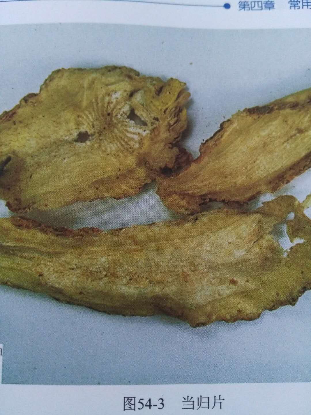 18、当归:当归作假的也时常能够遇到,常见的伪品或混淆品有欧当归、东当归、牛尾独活冒充的。鉴别的要点是口尝味甜而微苦辛,不麻舌;如果有强烈的麻舌感的,即是伪品。其次正品当归油性足、质韧而不易折断,如果色白,柴性大,很容易折断的,亦是伪品。